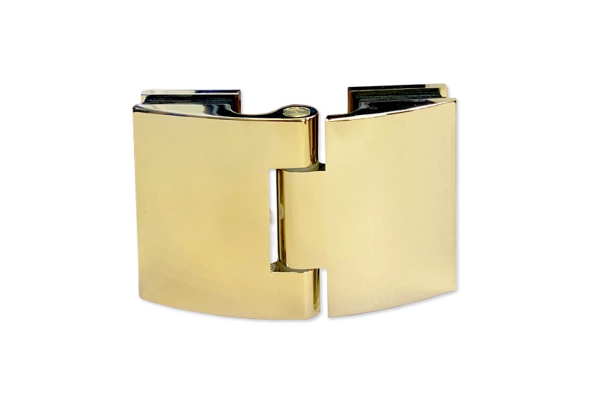 FGD-274.1 BR/TP Петля Bergamo стекло-стекло, с декоративными накладками (без реза уплотнителя). Петля выполнена из латуни и предназначена для закаленного стекла 8-12 мм.