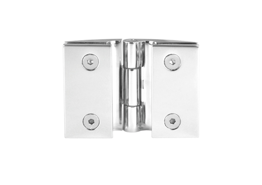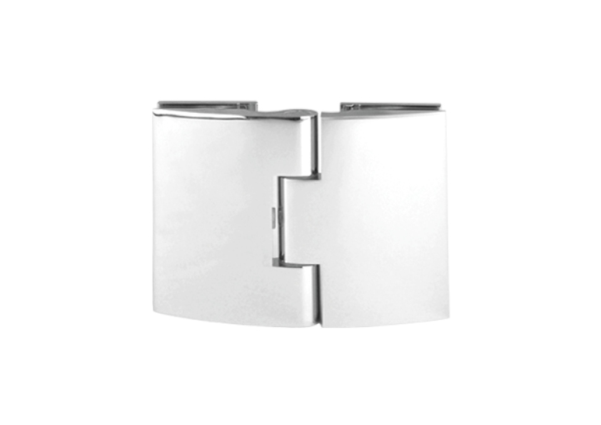 FGD-274.1 BR/CR Петля Bergamo стекло-стекло, с декоративными накладками (без реза уплотнителя). Петля выполнена из латуни и предназначена для закаленного стекла 8-12 мм.