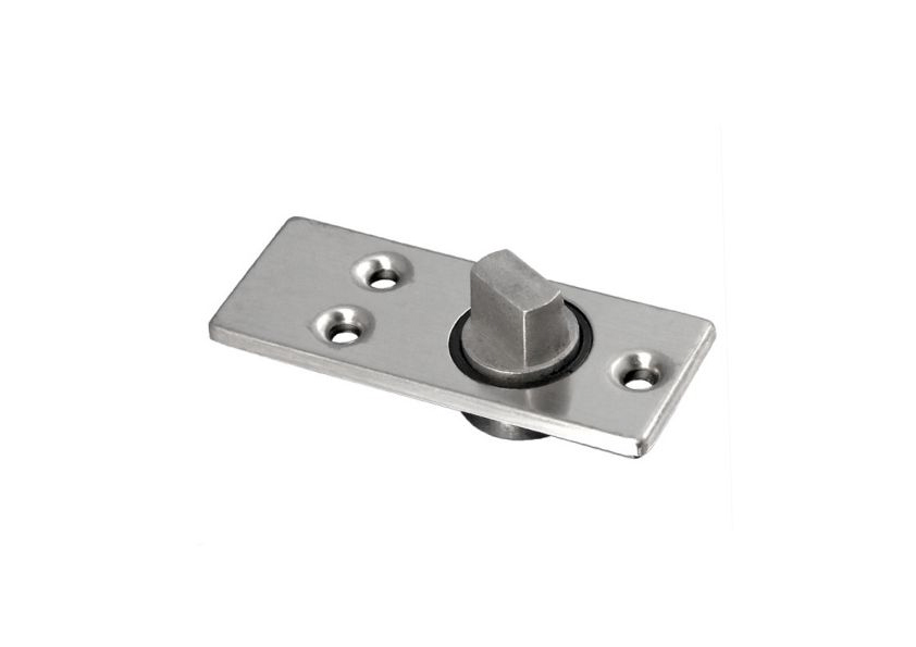 Нижний предназначен для установки у основания стеклянной двери маятникового типа. Он служит ответной частью для фитинга, на котором вращается дверь. Шарнир изготовлен из высокопрочного сплава, обеспечивающего детали высокую надежность и долговечность.