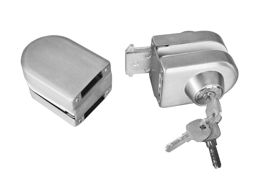 Замок предназначен для установки на двустворчатую раздвижную стеклянную дверь. Замок не требует сверления отверстий и оборудован запирающим механизмом типа ключ/защелка.