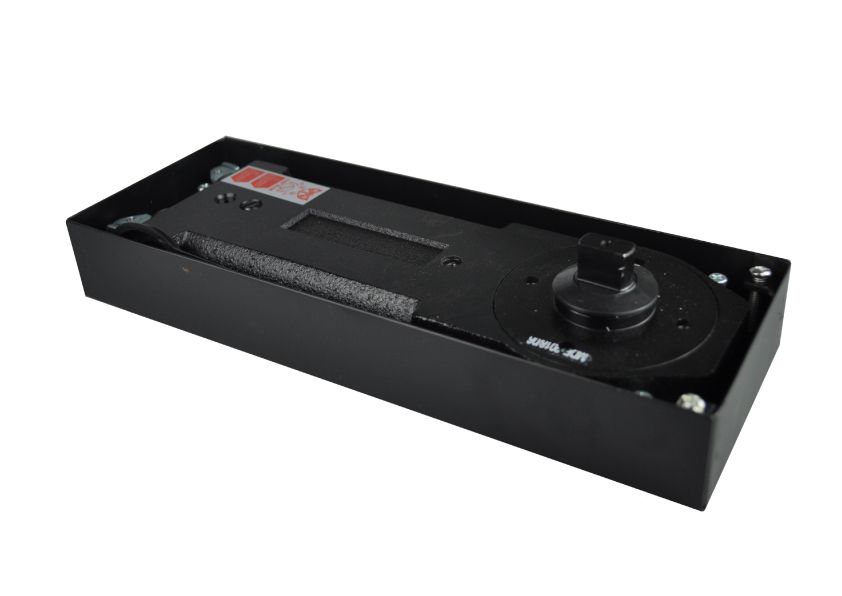 Скрытый напольный доводчик, устанавливается непосредственно в пол. Он обеспечивает плавное и практически бесшумное движение створок дверей маятниковых или с притвором. Достаточно просто начать ее закрывать, а остальное доводчик сделает за вас. Доводчик устанавливается в металлический короб, размеры которого: